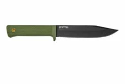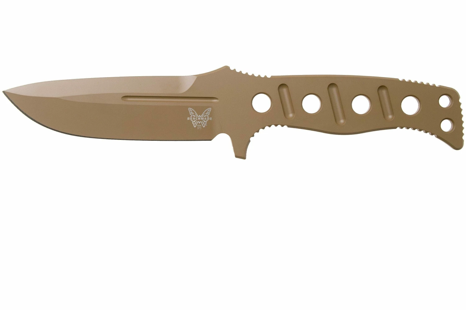 Le Benchmade 375 Sibert Adamas est un couteau à lame fixe extrêmement solide. La lame est en acier CPM Cru Wear. Un type d’acier extrêmement dur et qui conserve très bien son tranchant. Le CruWear est par ailleurs très apprécié pour sa robustesse. Benchmade a donc durci cet acier jusqu’à 63-65 HRC ! C’est plutôt élevé, et comme ça, le tranchant dure encore plus longtemps. La seule chose à prendre en compte avec le CruWear, est la résistance à la rouille. En effet, il n’est complètement inoxydable. Heureusement, un beau revêtement a été appliqué, afin de protéger la lame des influences extérieures.