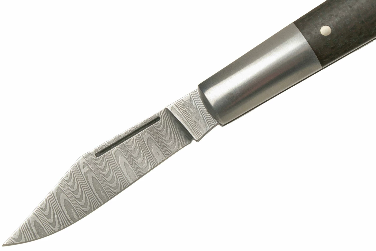 Le Böker Barlow M4 Sherman Damascus est un couteau de gentleman classique. Son design est traditionnel et relativement passe-partout. Le design Barlow a été repris par de nombreuses marques depuis des années. Mais peu arrivent à créer des Barlow aussi superbes que ceux de Böker. La lame s’ouvre à deux mains et le mécanisme slipjoint apporte une résistance pour éviter que la lame ne se referme. Ce couteau est livré dans un bel étui de rangement en feutre.