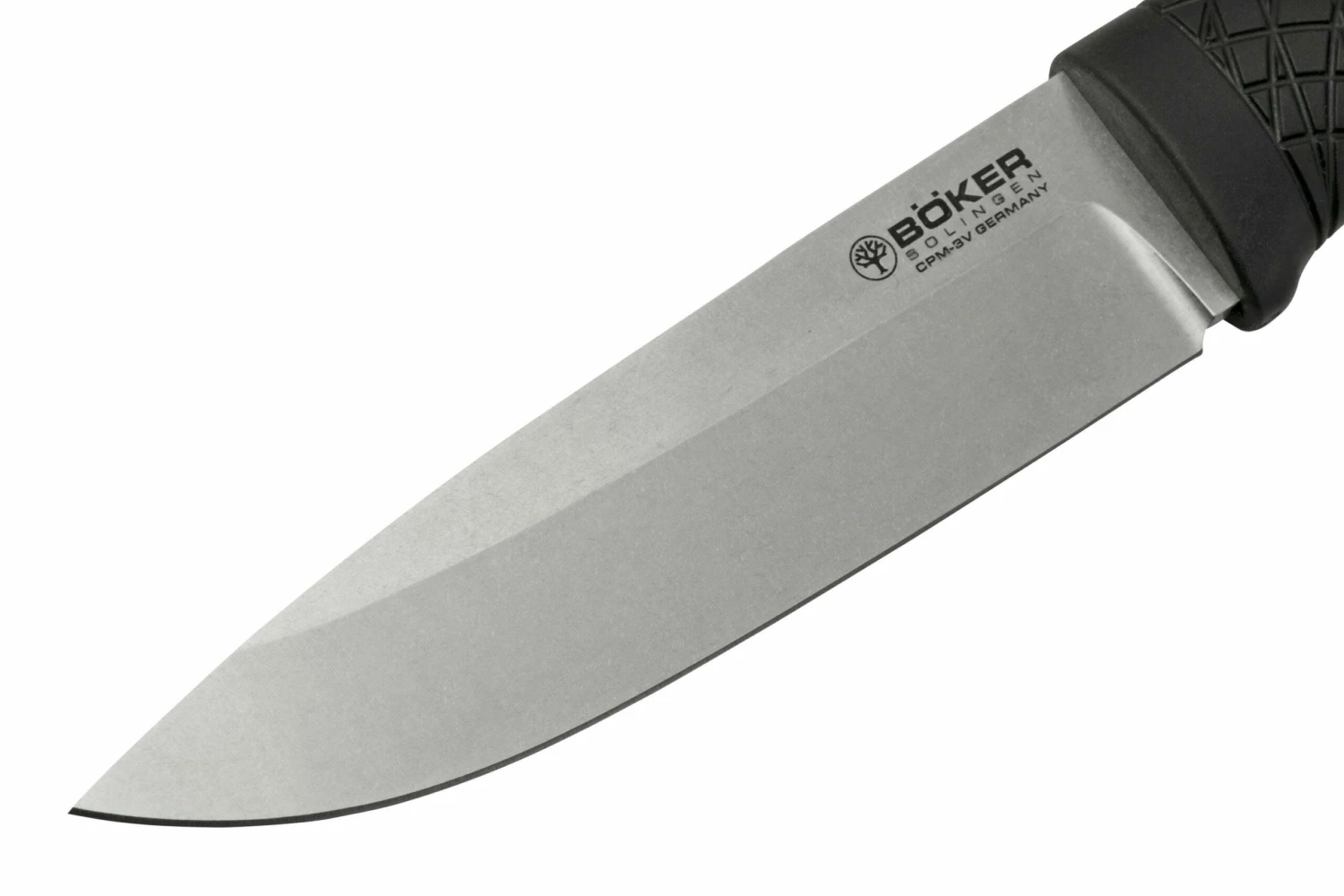 Le Böker Bronco 121504 est un magnifique couteau de bushcraft, dont le design est inspiré du couteau Pukko finlandais traditionnel. Son look minimaliste et son manche arrondi font qu’il tient très bien en main. De plus, le manche est doté d’une texture qui offre une meilleure accroche, même par temps humide. Il a été fabriqué et fini à la main dans l’usine Böker à Solingen, Allemagne.