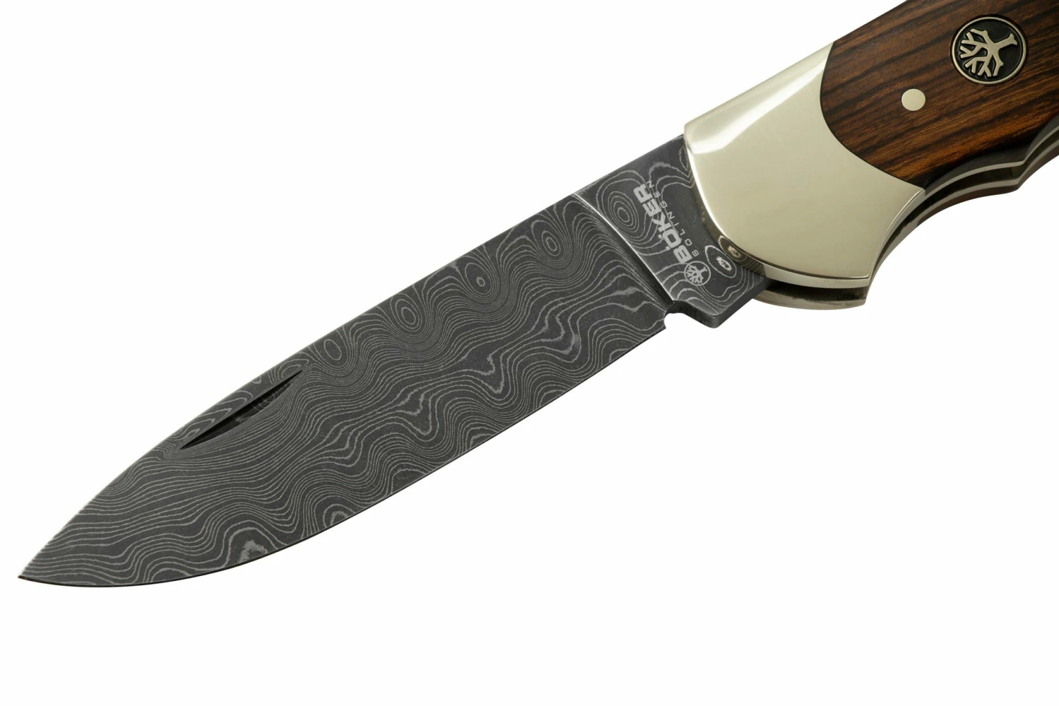 Le Böker Optima Damast desert ironwood est une super version en édition limitée du Böker Optima. Ce couteau de chasse typique offre une prise en main bien ferme, pour une adhérence optimale. Le Böker Optima a une lame faite en acier damassé 150 couches forgée à la main, présentant le magnifique motif “Coilbelt”, fait par Chad Nichols. On l’ouvre à deux mains grâce au nailnick, pour ensuite la voir verrouillée en position par un solide backlock. Tout comme sur les autres modèles Böker Optima, on peut facilement retirer la lame. C’est idéal pour pouvoir nettoyer facilement le couteau et bien en prendre soin.