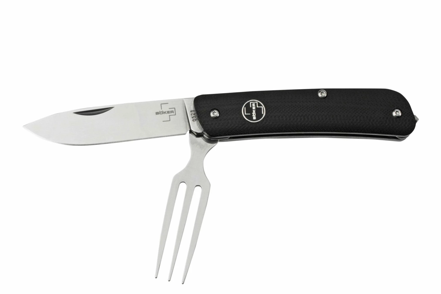 Le Böker Plus Tech Tool Fork fait beaucoup penser au célèbres couteaux de poche suisses. Mais au lieu des plaquettes en plastique rouge traditionnelles, ce couteau a un manche en G10. Cette version dispose d’un couteau et d’une fourchette. Parfait pour un pique-nique lors d’une randonnée ou d’une ballade en vélo.