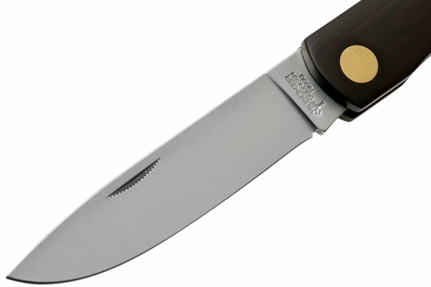 Le Böker Rangebuster Maroon 110914 est un couteau de poche traditionnel, fabriqué à Solingen en Allemagne. Sa forme rappelle celle du Solinger Hippekniep et de son concurrent Américain : le Sod Buster. Un couteau fait pour une utilisation à la campagne. Un modèle fantastique adapté pour tous les agriculteurs, les citoyens et les gens de la campagne. Mais son apparence en fait également un superbe couteau de gentleman.