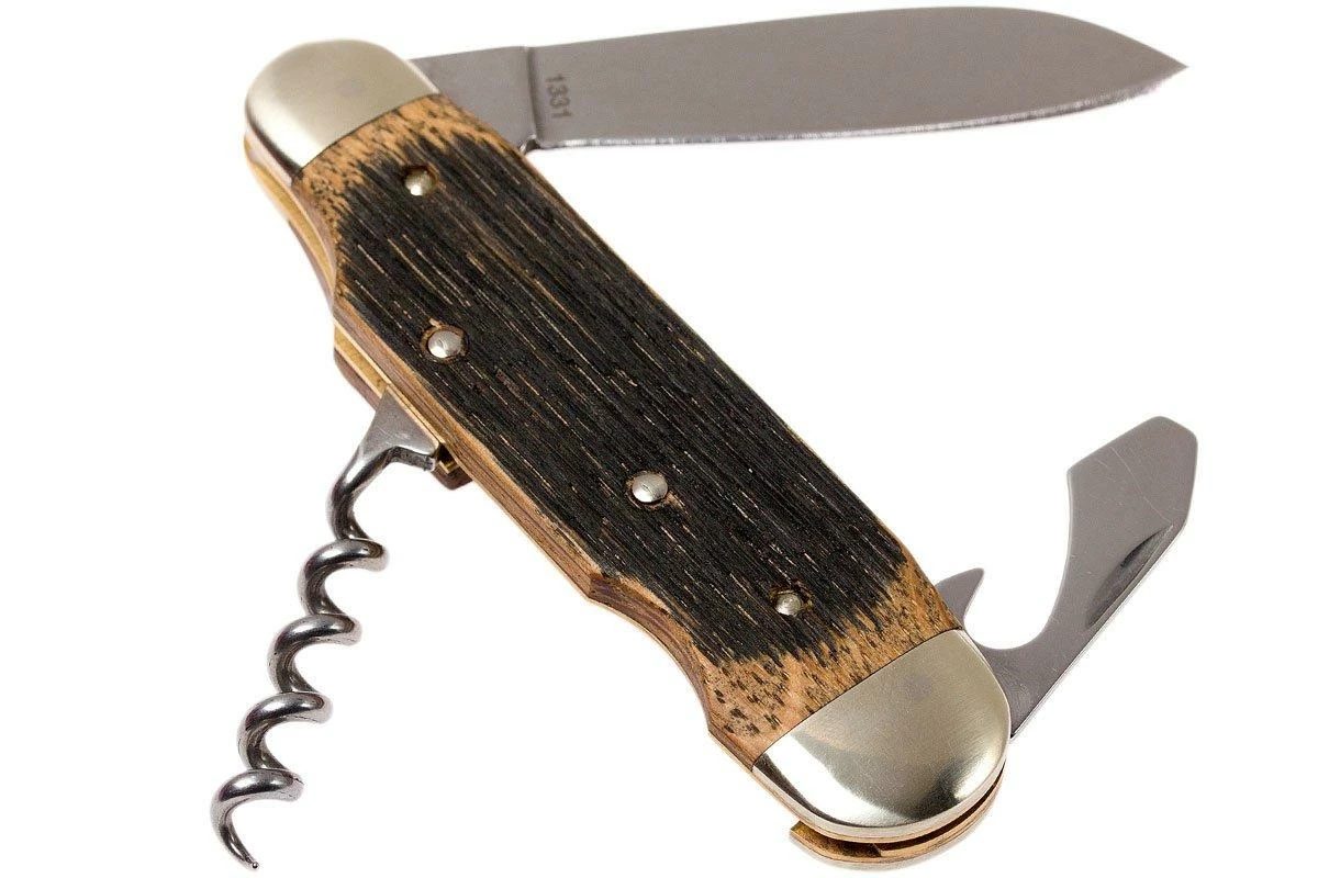 Le Böker Winzermesser est un couteau de poche classique avec tire-bouchon et décapsuleur. Le parfait compagnon à emmener en pique-nique pour se faire un sandwich et ouvrir une bouteille de vin. Le manche en chêne sombre donne un caractère traditionnel au couteau. La lame est en acier inoxydable 4034. Un système slipjoint maintient le couteau ouvert, mais ne le verrouille pas entièrement.