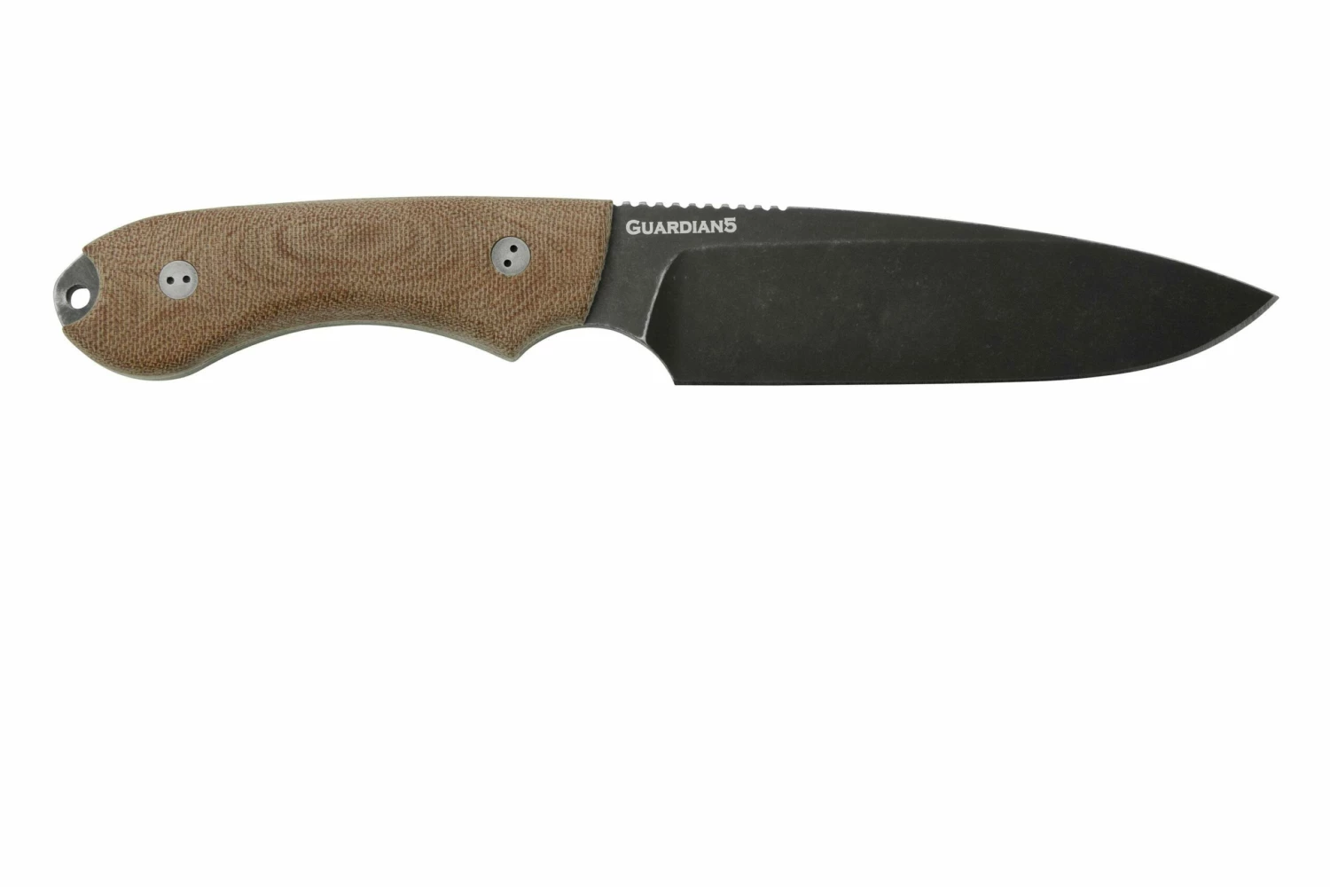 Le Bradford Guardian 5 Magacut Nimbus Natural Micarta est un couteau à lame fixe robuste, conçu pour une utilisation outdoor et survie. L’acier et le choix des matériaux pour le manche rendent ce couteau extrêmement costaud. Le couteau est livré avec un étui en nylon compatible MOLLE.