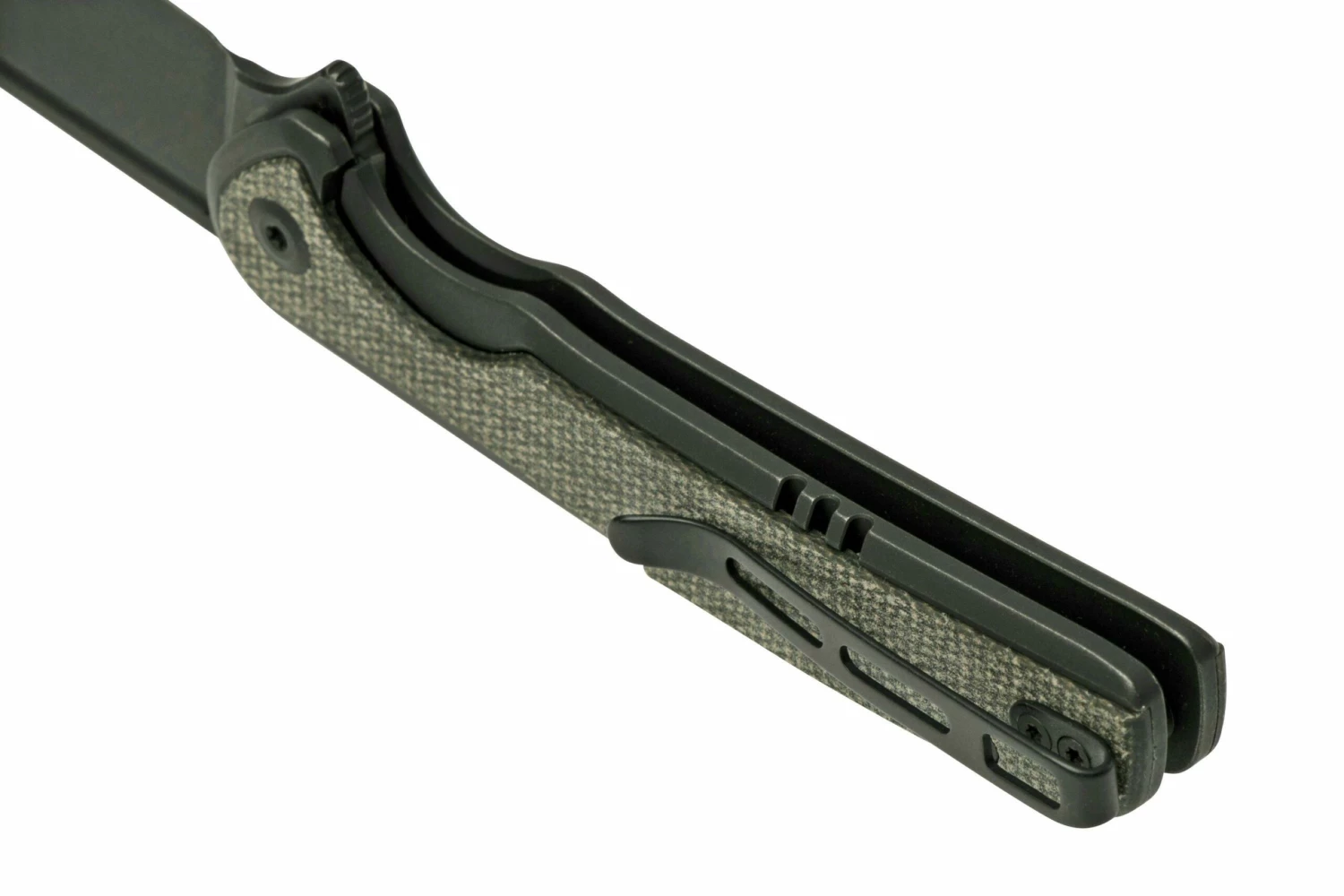 Le Civivi Voltaic C20060-2 est un couteau de poche magnifique pour l’everyday carry. On ouvre la lame avec le flipper. Les roulements à billes en céramique rendent l’action extrêmement souple. Une fois ouverte, la lame est bloquée par un framelock. La lame mesure quasiment 9 cm de long, et ce couteau reste assez long, même replié. Mais il reste tout de même discret une fois glissé dans la poche, et on le sent à peine.