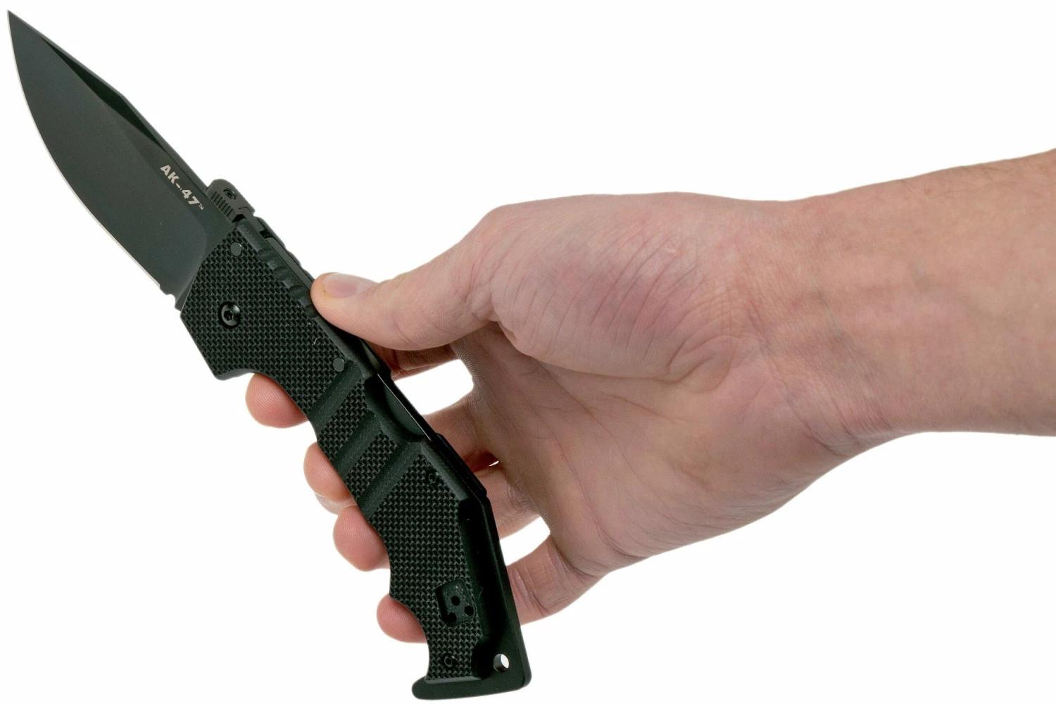 Le Cold Steel AK-47 est inspiré de la fameuse Kalashnikov AK-47. Ce couteau a une lame de 8,8 cm de long et 3,1 cm de large. La lame de ce AK-47 est en acier américain CPM S35Vn résistant à la corrosion. Cet acier se caractérise par une dureté moyenne et une excellente conservation du tranchant. La lame est pourvue d’un revêtement noir DLC.