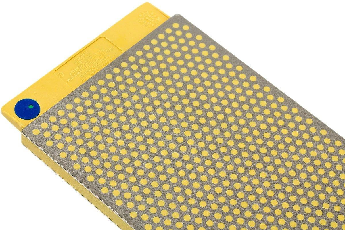 La DMT Duosharp est une pierre à aiguiser diamant de grand format parfaite pour aiguiser les grands couteaux. La surface d’aiguisage est pourvue du fameux motif à pois caractéristique de DMT. Chaque face de la pierre possède une granulométrie différente. On a ainsi deux phases d’aiguisages en un.