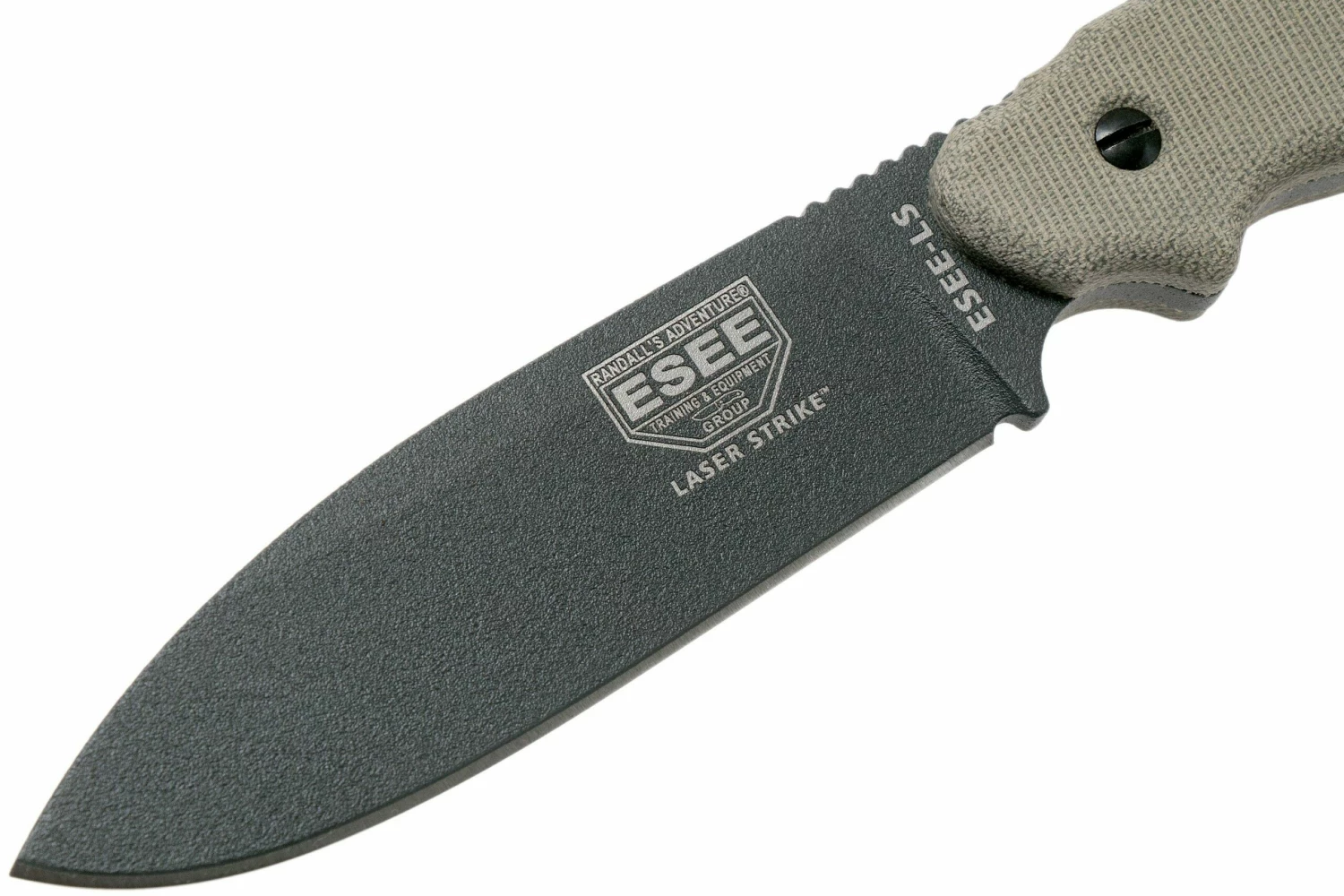 Le ESEE Laser Strike est le frère du Model 4. Il est légèrement plus grand, ce qui donne à la main un peu plus d’espace. La lame est en acier au carbone 1095. L’acier carbone n’étant pas résistant à la corrosion, un revêtement poudré est appliqué sur la lame pour une meilleure protection contre la rouille. La grande performance de l’acier garantit un plaisir d’utilisation à vie. La lame full tang est entourée d’un manche en micarta. Ce manche est un peu rugueux au toucher ce qui permet une bonne adhérence et un confort d’utilisation optimal.