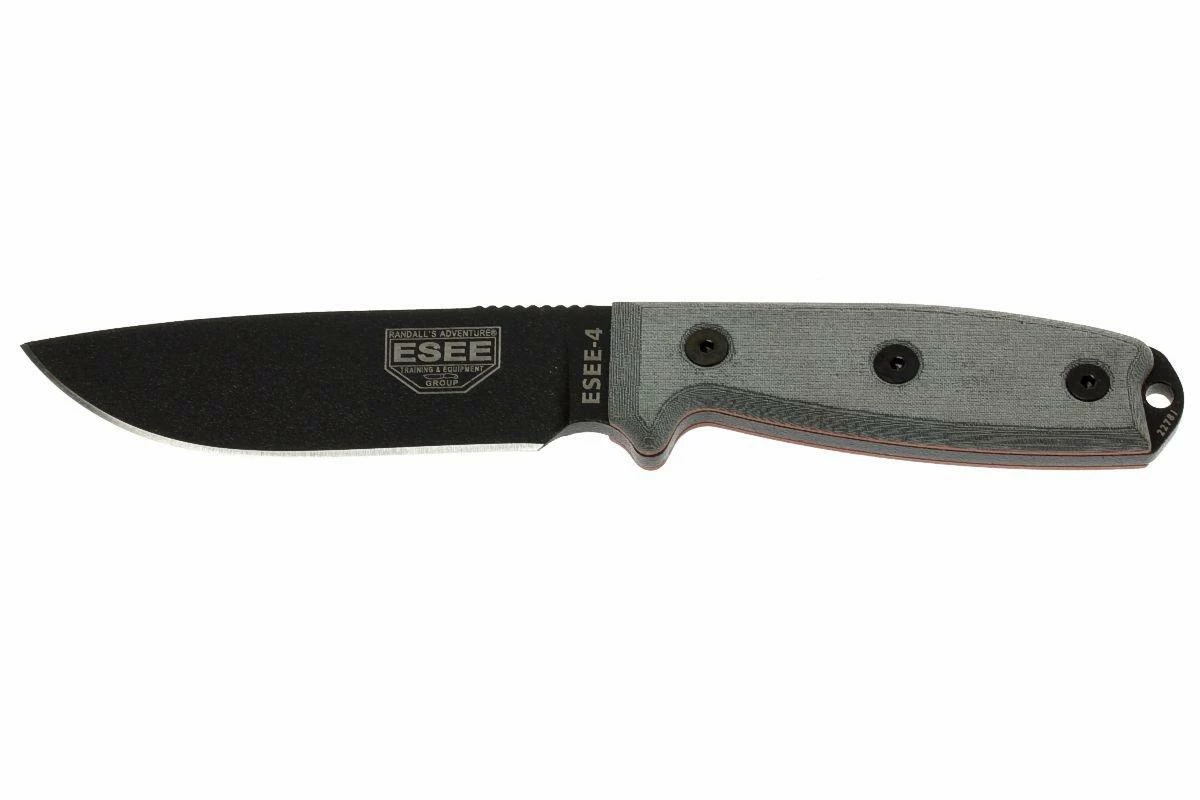 L’ESEE Model 4 est un couteau de survie solide avec une lame en acier carbone 1095. L’acier carbone n’étant pas résistant à la corrosion, un revêtement poudré est appliqué sur la lame pour une meilleure protection contre la rouille. La grande performance de l’acier garantit un plaisir d’utilisation à vie. La lame full tang est entourée d’un manche en micarta. Ce manche est un peu rugueux au toucher ce qui permet une bonne adhérence et un confort d’utilisation optimal. L’ESEE 4 est assez grand pour offrir suffisamment d’espace à vos mains sans avoir des dimensions colossales.
