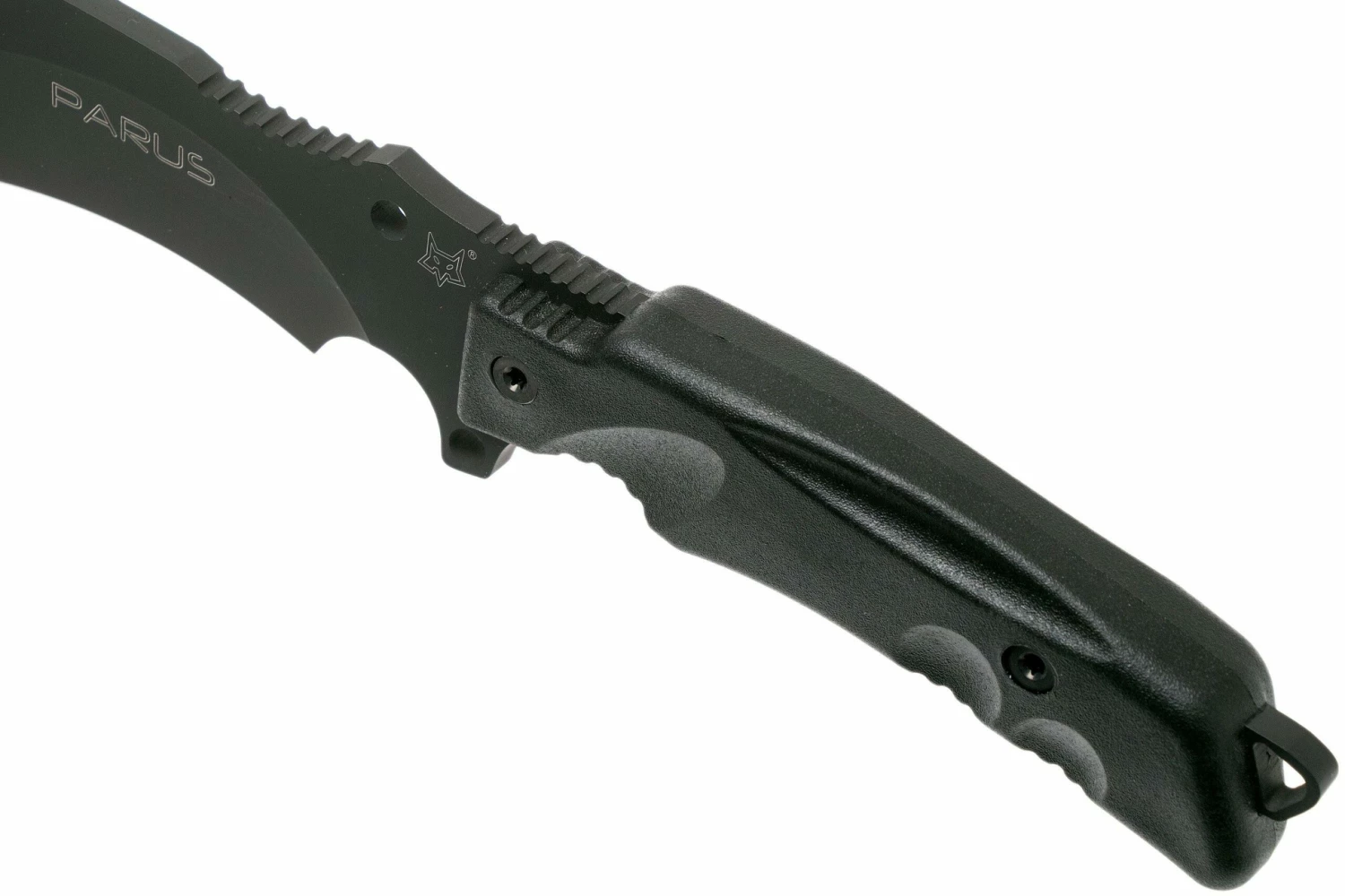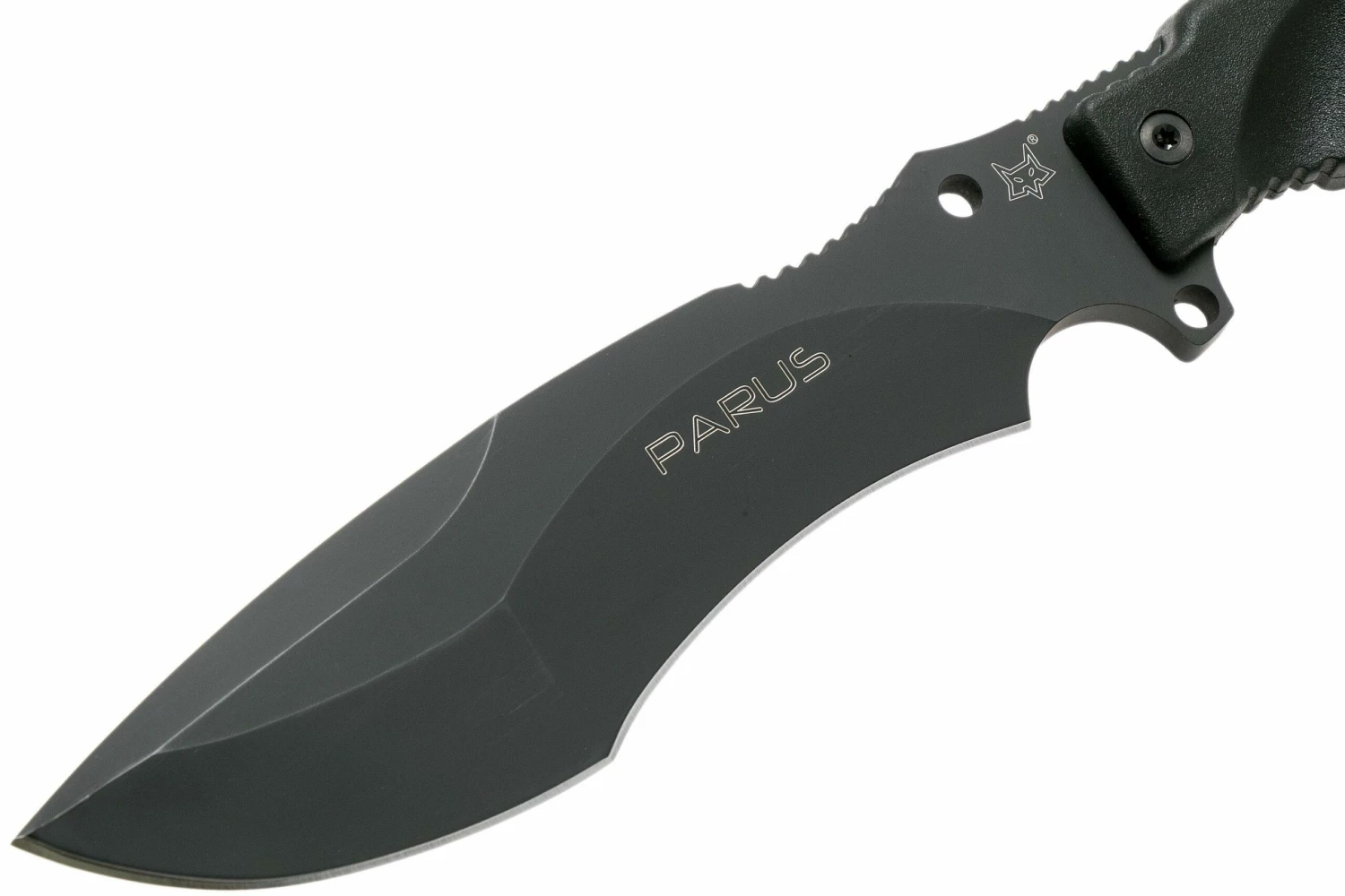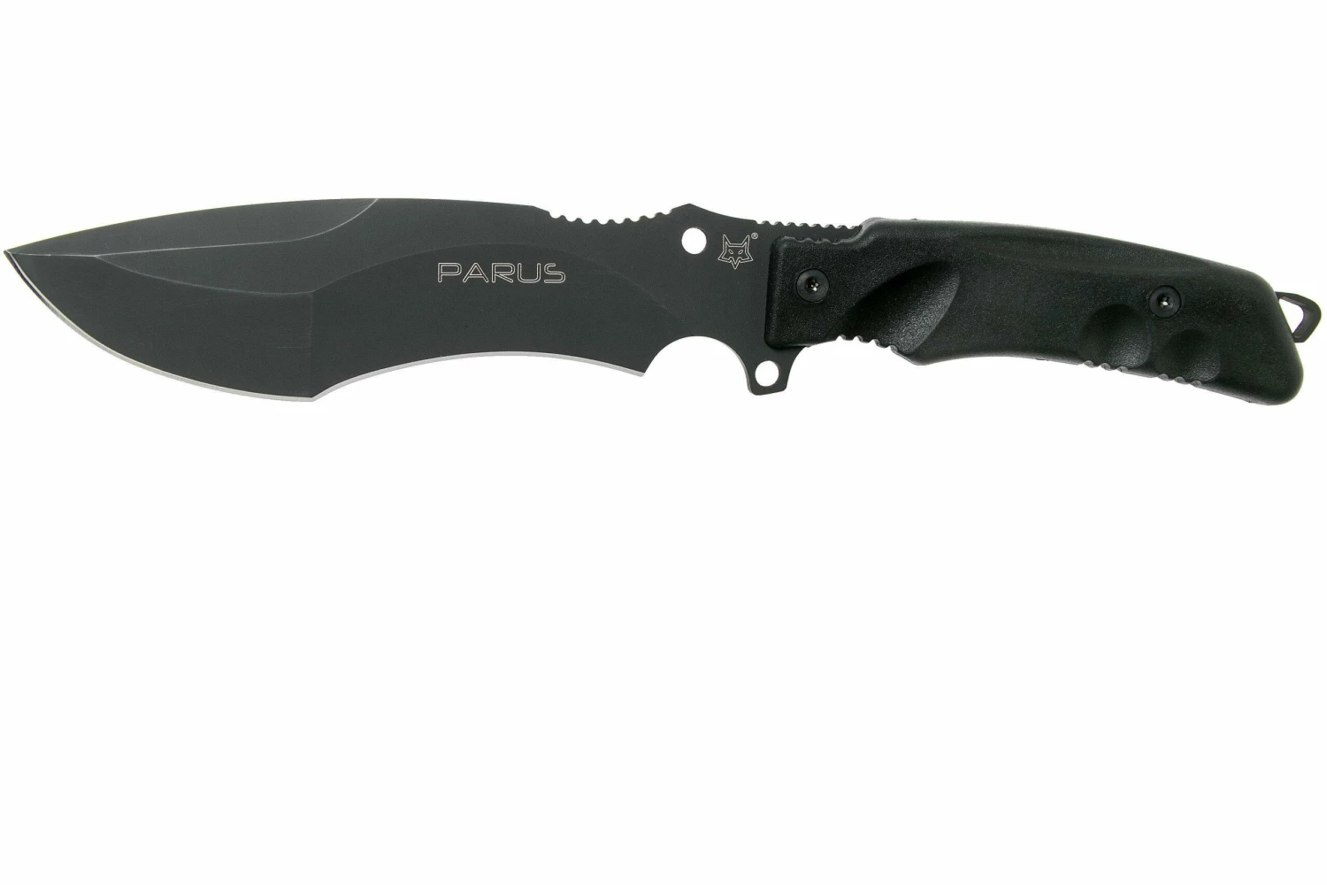 Le Fox Knives Parus FX-9CM06 est un gros couteau de survie livré avec un kit de survie complet. La lame de 17,5 cm de longueur est parfaite pour fendre le bois mais aussi couper finement. L’avant de la lame est courbé. On appelle cette forme ‘recurve’. Cela renforce les performances de coupe. L’avant de la lame est également plus ‘bas’ que le reste. Le centre de gravité est donc placé vers l’avant du couteau, idéal pour fendre du bois ou élaguer.