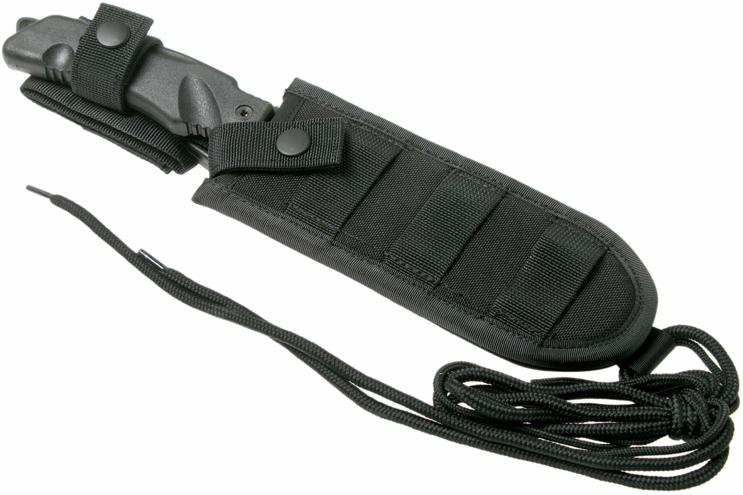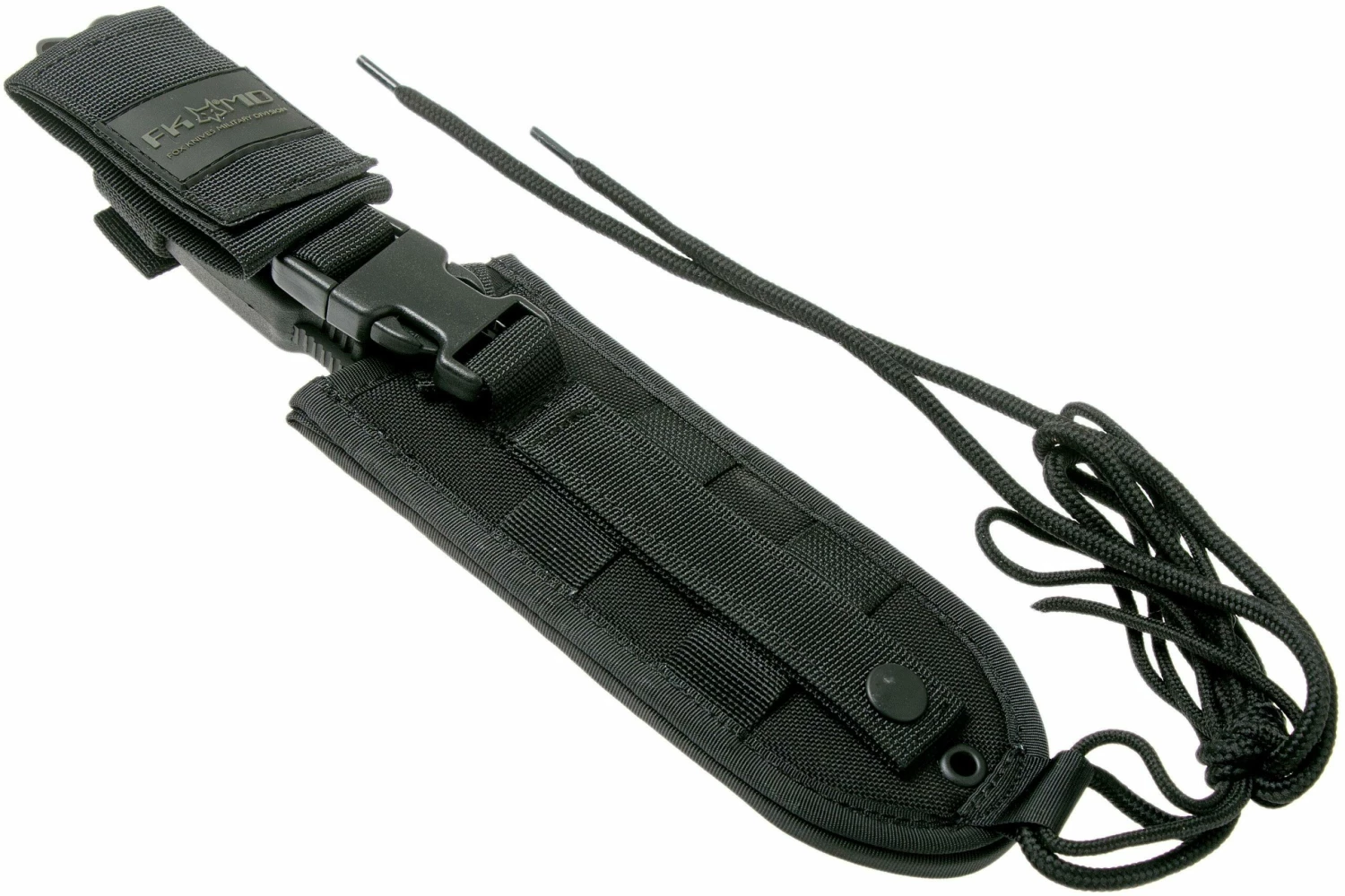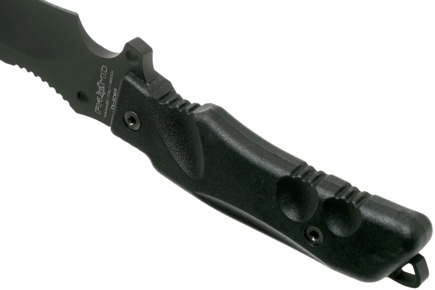 Le Fox Knives Parus FX-9CM06 est un gros couteau de survie livré avec un kit de survie complet. La lame de 17,5 cm de longueur est parfaite pour fendre le bois mais aussi couper finement. L’avant de la lame est courbé. On appelle cette forme ‘recurve’. Cela renforce les performances de coupe. L’avant de la lame est également plus ‘bas’ que le reste. Le centre de gravité est donc placé vers l’avant du couteau, idéal pour fendre du bois ou élaguer.