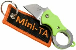 Le Fox Mini-TA est un petit couteau de poche porte-clés. C’est un concept audacieux de sortir un couteau aussi emblématique que le karambit dans un format aussi petit. Pas de problème pour Fox, ils savent comment faire. Le Mini-Ta est particulièrement adapté à l’ouverture de boîtes et d’emballages. Ce modèle est basé sur le Mini-Ka. Il s’agissait alors d’un vrai karambit miniature. Le Mini-Ta, en revanche, a une lame droite.
