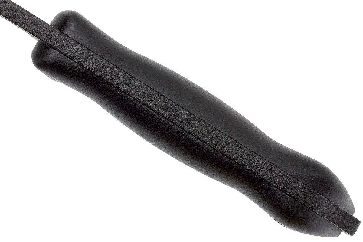 Le KA-BAR BK22 Companion est l’un des couteaux les plus lourds de notre gamme. Ce couteau est absolument indestructible. La lame en acier carbone 1095 mesure 6,6 mm d’épaisseur. Ce type d’acier n’est pas résistant à la corrosion. La lame est donc recouverte d’un revêtement noir pour faciliter l’entretien. Son épaisseur et les propriétés de l’acier carbone 1095 rendent ce couteau incroyablement robuste. En ajoutant la facilité d’aiguisage de cet acier, on comprend vite pourquoi ce couteau est si populaire.