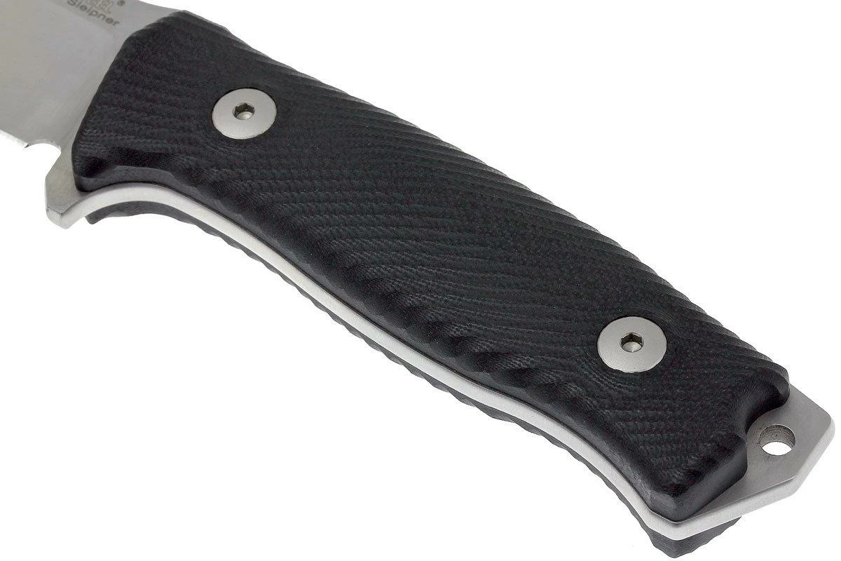 Le LionSteel M5 est un couteau à lame fixe polyvalent. Il peut aussi bien servir comme couteau de survie mais aussi de couteau de chasse. La lame en acier Sleipner est durcie jusqu’à 60-61 HRC. La longueur de la lame de ce couteau est de 11,5 cm. Sur le dessus de la lame se trouve un tout petit jimping. Très discret mais suffisant pour vous assurer une bonne adhérence. Le couteau lui-même est très rond, typique des designs italiens. Le manche en G10 est magnifiquement travaillé donnant à ce couteau un aspect gracieux et élégant.