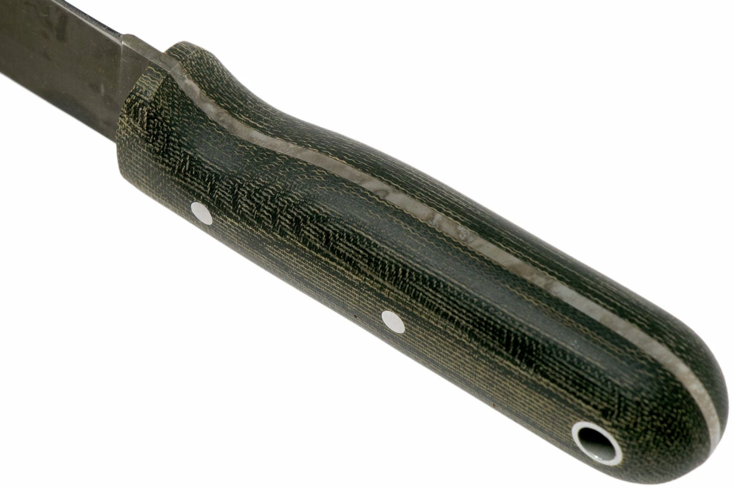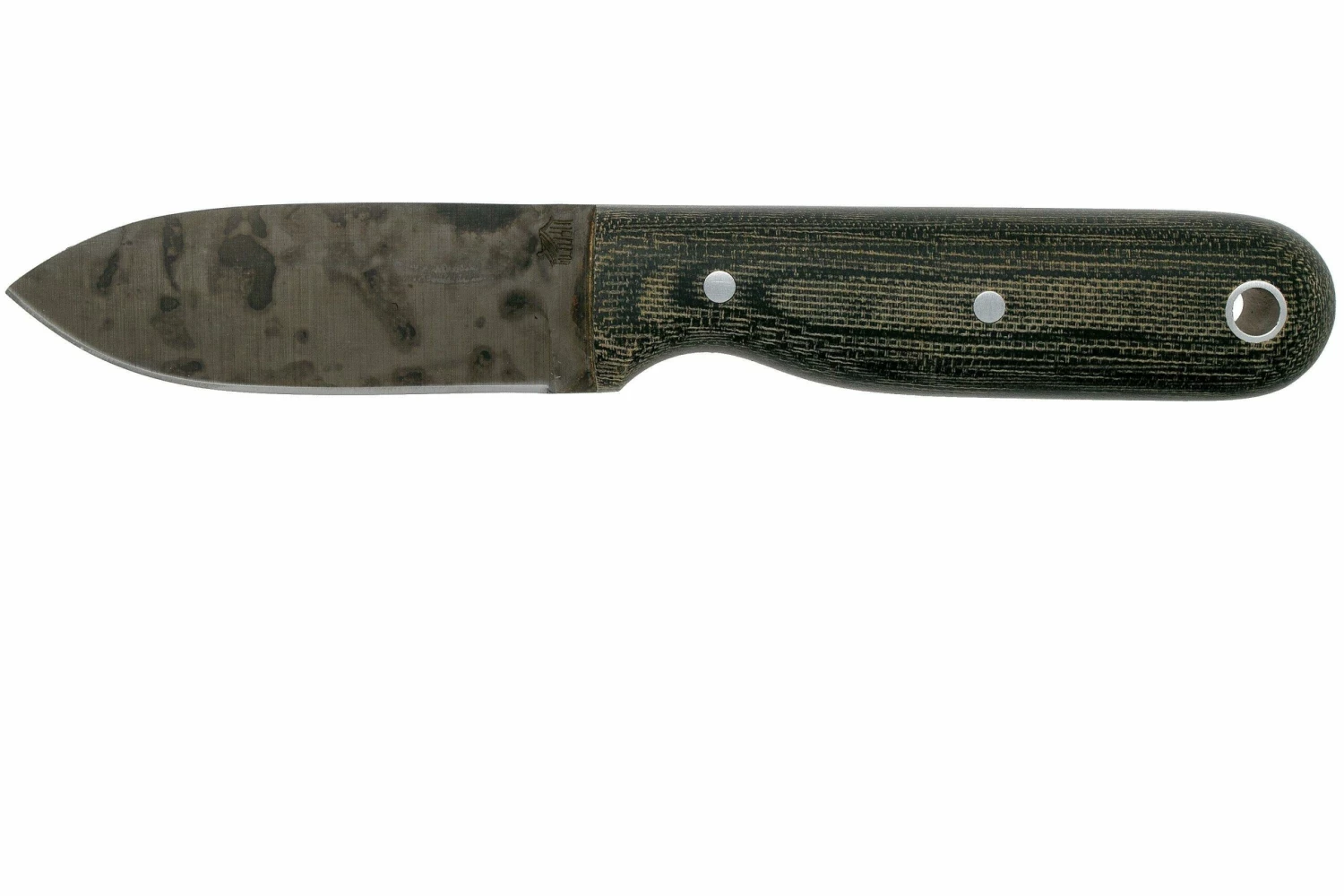 Le LT Wright Bushbaby HC est un excellent couteau de bushcraft compact, fabriqué aux États-Unis. Les points forts de ce modèle sont d’excellentes performances sur le terrain, un rapport qualité-prix attractif et un entretien facile. Au niveau des formes, c’est un peu l’archétype du couteau bushcraft : simple mais efficace. Le manche a l’air simple, et il l’est. Parce qu’il fonctionne simplement. Sur ce manche “broomstick” (manche à balai), vous avez une excellente adhérence dans toutes les différentes prises de bushcraft. Que vous fassiez des entailles, des feathersticks ou la cuisine. Le Bushbaby ressemble au Bushcrafter, mais en plus petit.