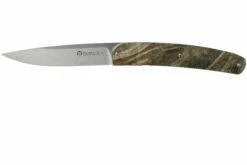 Le Maserin Gourmet est un couteau de gentlemen léger et mince conçu comme un couteau à steak. Un fait qui n’est que trop vrai : Un bon restaurant qui propose un bon couteau à steak pour déguster un steak digne de ce nom, ça ne court pas les rues. Avec le Maserin Gourmet, vous avez le couteau parfait toujours à portée de main. Conçu par Attilio Morotti, le Gourmet a un look typiquement italien avec de superbes matériaux. Le manche du Gourmet est en magnifique thuya foncé. Le backspacer est fait du même matériau que le manche. Original !