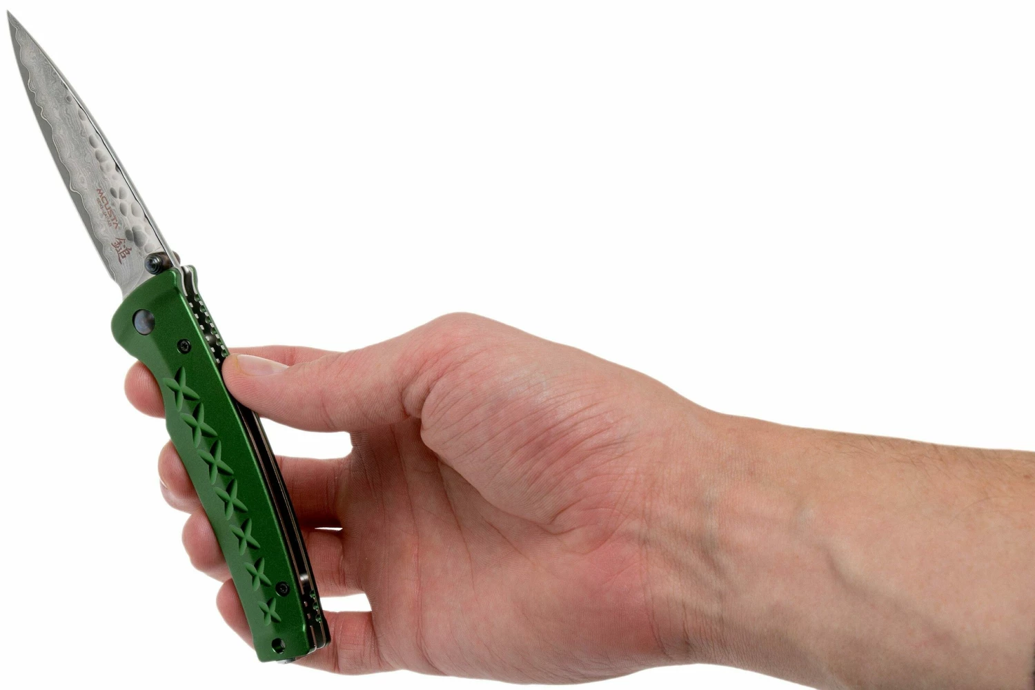 Le Mcusta Fusion MC-163D est un couteau de poche de grande qualité et tranchant comme un rasoir, fabriqué dans la capitale de la coutellerie japonaise, Seki. Sa longueur totale de 19,5 cm en fait un format idéal pour un couteau EDC. Le manche en aluminium et les trous colorés offrent une prise en main très agréable. L’aluminium a l’avantage d’être très léger. Le couteau est donc presque imperceptible dans la poche de pantalon.