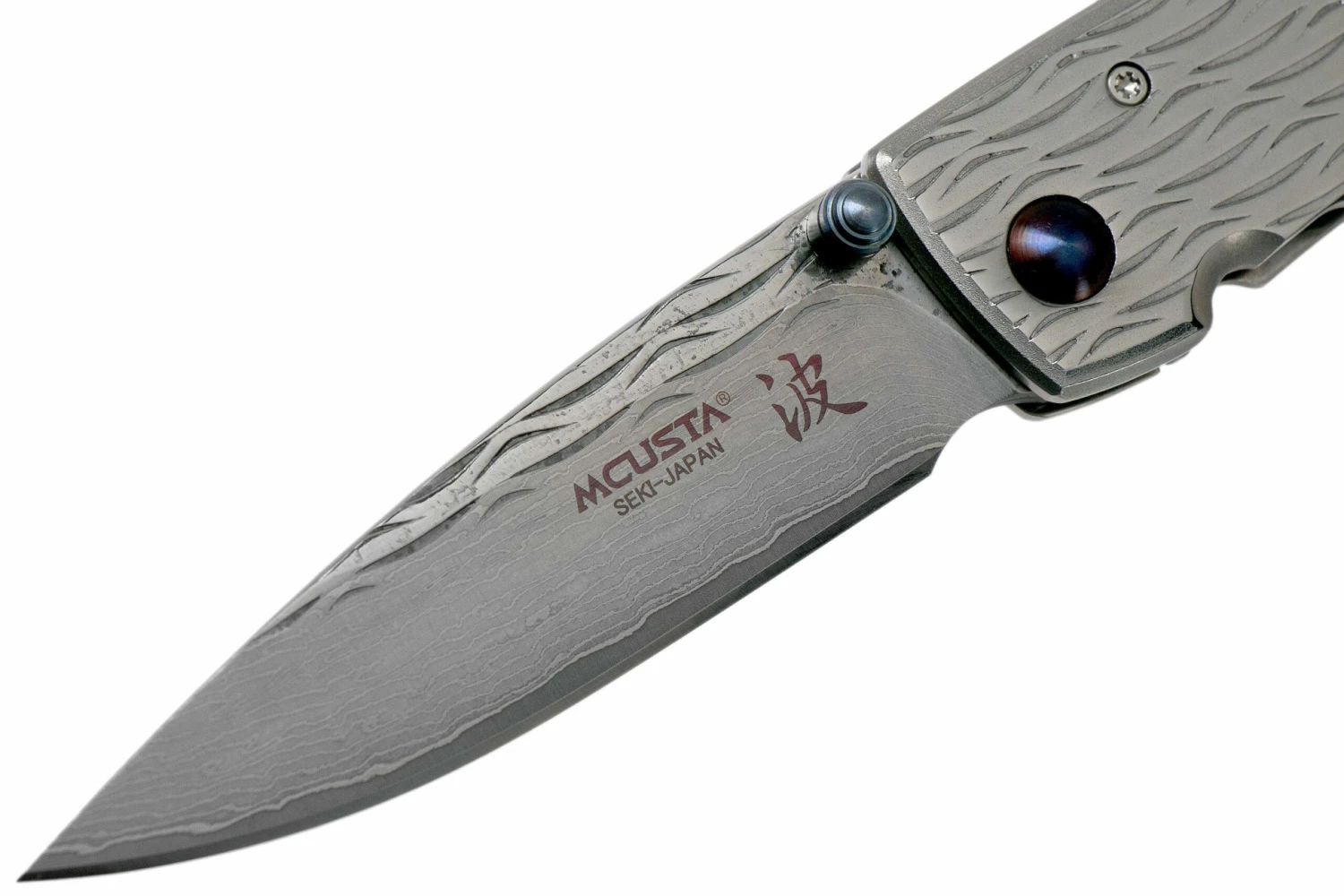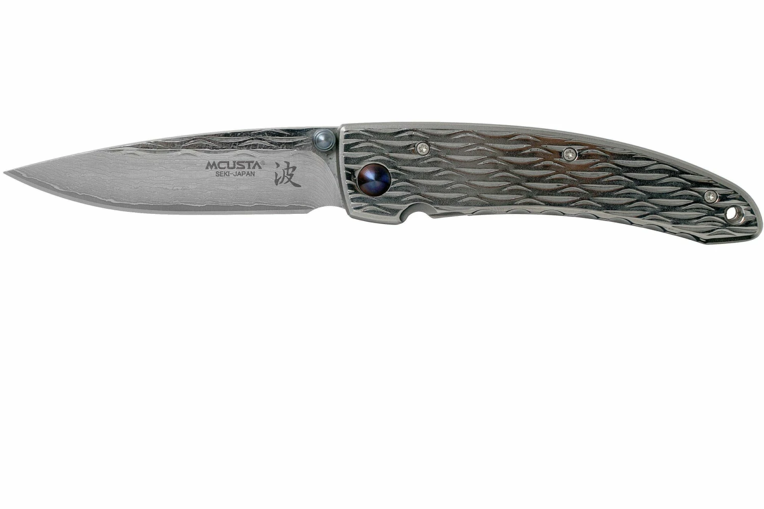 Le Mcusta Nami Small Damascus MC-0111D est un couteau de gentleman compact et très stylé. On apprécie les jolis détails et la belle finition, et bien sûr la magnifique lame. Elle est faite en acier damassé, avec un coeur en acier VG10. Non seulement c’est agréable à l’oeil, mais la lame conserve également très bien son tranchant tout en étant facile à aiguiser.
