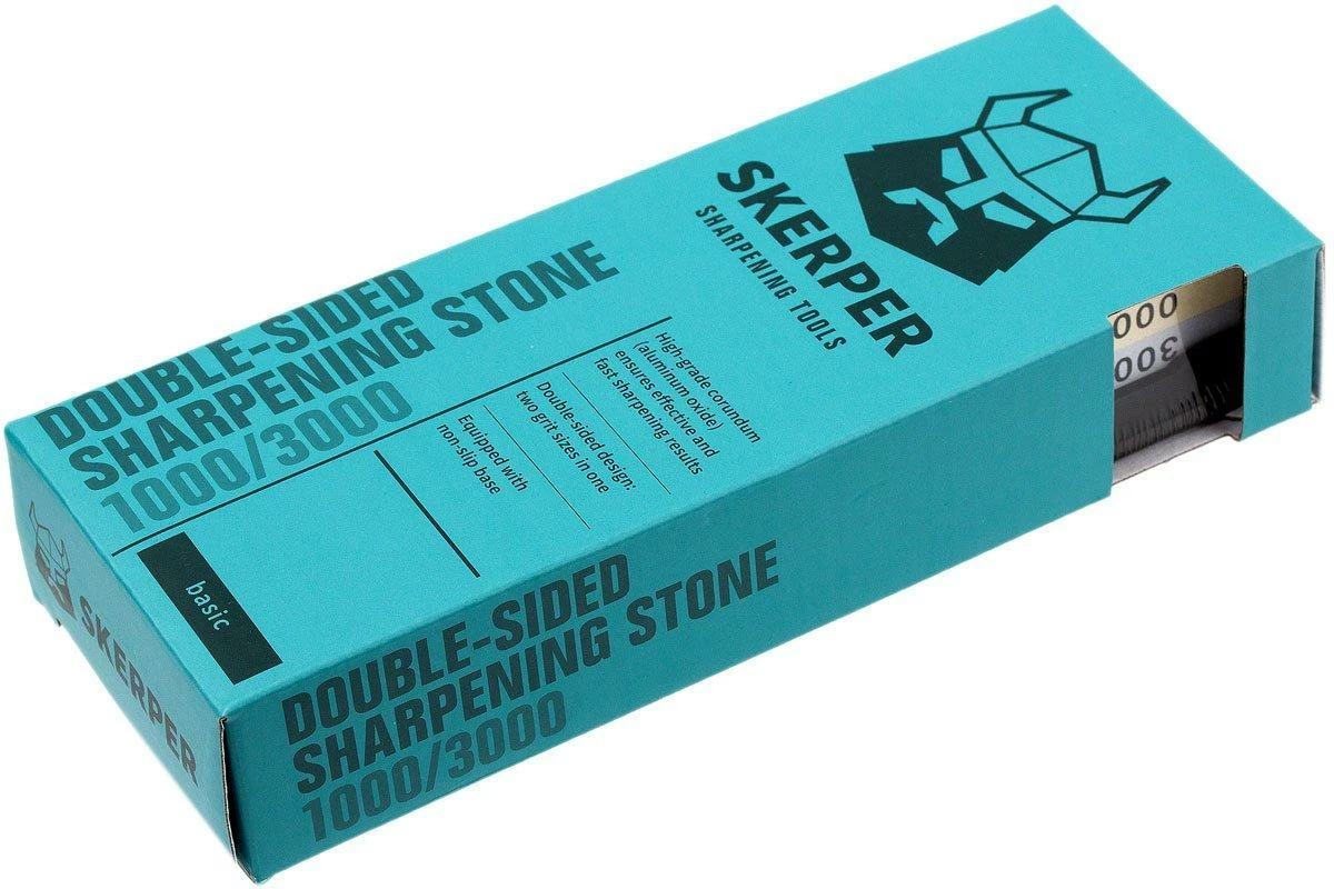 La pierre à aiguiser Skerper 1000/3000 SVSH002 est une pierre à aiguiser très avantageuse. Avec le côté de grain 1000 on aiguise les couteaux suffisamment tranchants pour les travaux de coupe quotidiens. Vous souhaitez aller plus loin ? Avec le côté au grain de 3000 on obtient un tranchant rasoir. Le couteau tranchera la viande, le poisson et les légumes comme du beurre. Les pierres à eau Skerper sont en alumine et agglomérées en céramique. Les grains pénètrent ainsi profondément dans l’acier pour atteindre un résultat rapide.