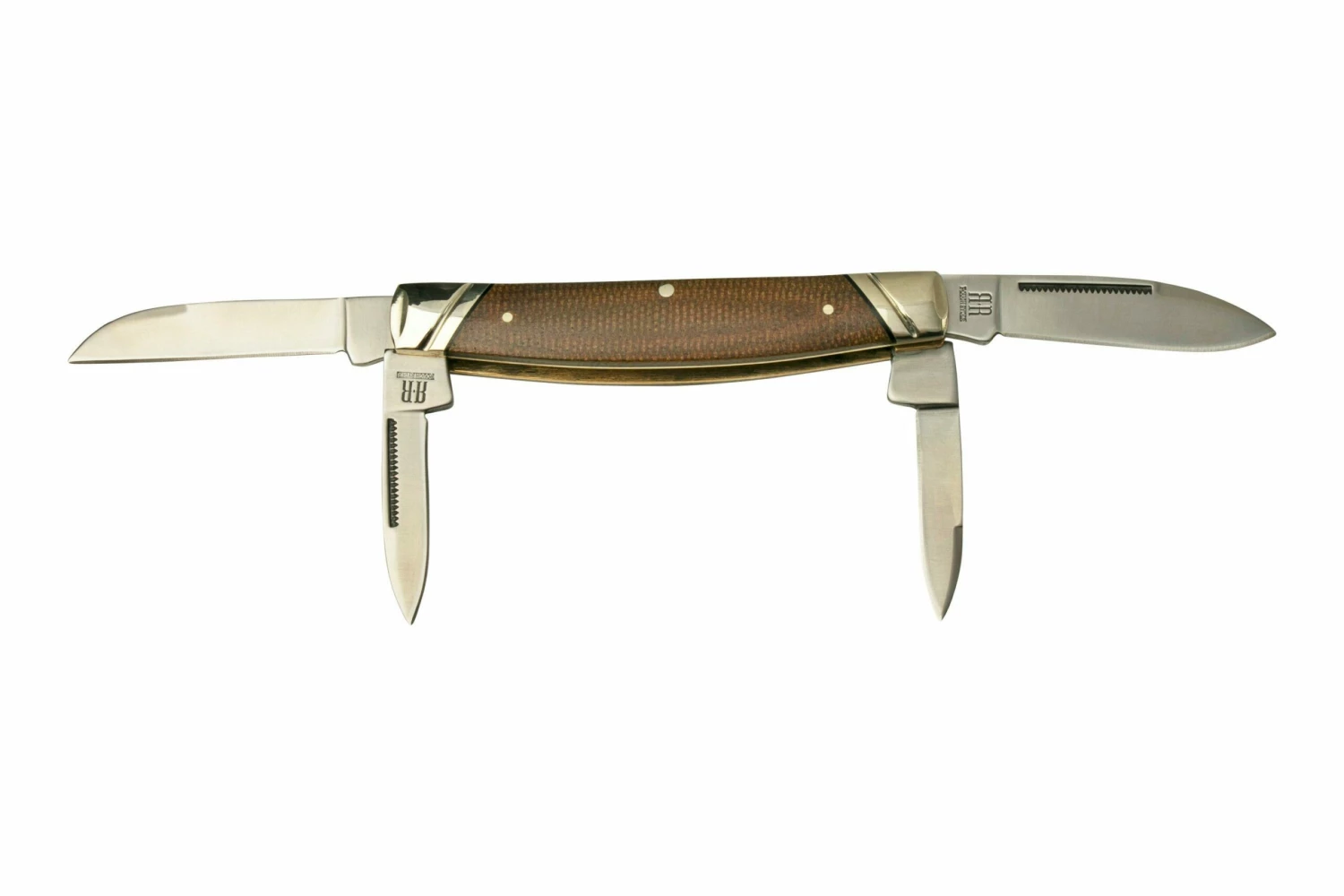 Le Rough Ryder Congress est un couteau de poche traditionnel vraiment génial. On reconnaît le Congress à son manche courbé abritant plusieurs lames : ici, pas moins de 4 ! Une lame pen et un trio de lames sheepsfoot/lamsfoot. La lame s’ouvre à deux mains et est maintenue ouverte par un slipjoint, qui ne la bloque pas complètement. Ce couteau de poche est donc légal dans de nombreux pays d’Europe.