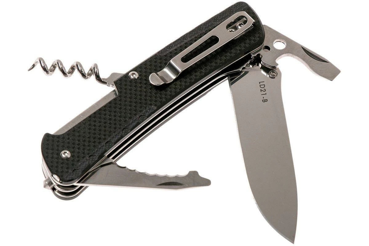 Le Ruike LD21 est un couteau de poche équipé de quelques outils. Comme un couteau suisse qui ne vient pas de suisse. Le Ruike LD21 s’ouvre à une main et dispose d’un double mécanisme de verrouillage. Double verrouillage ? Oui vous avez bien lu. La lame est maintenue en position ouverte par un mécanisme slipjoint. Un mécanisme que l’on rencontre sur les couteaux de poche traditionnels. Mais Ruike a également ajouté un linerlock. De quoi rendre le slipjoint encore plus résistant. Un système très sûr qui permet d’utiliser ce couteau de façon plus intensive. Ruike a choisi une lame en acier suédois Sandvik 12C27. Un type d’acier résistant à la corrosion et facile à aiguiser.