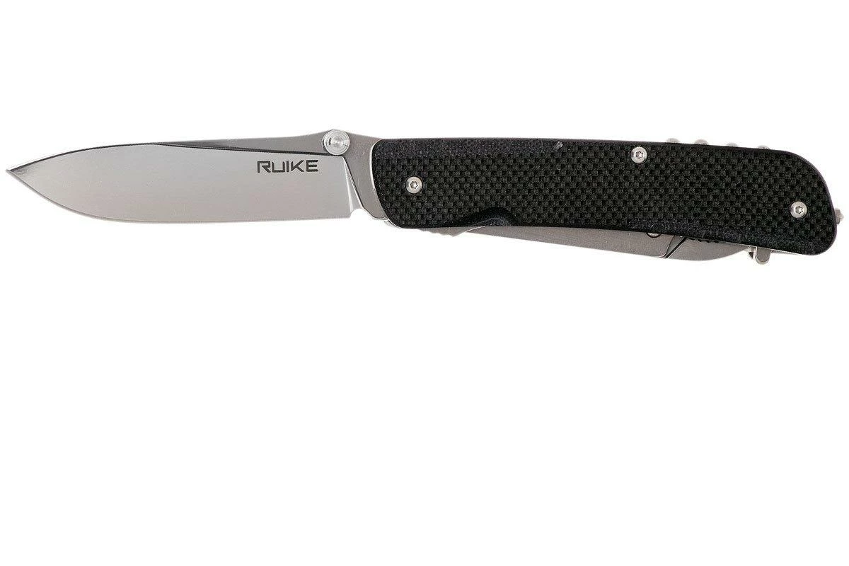 Le Ruike LD51 est un couteau de poche équipé de quelques outils. Comme un couteau suisse qui ne vient pas de suisse. Le Ruike LD51 s’ouvre à une main et dispose d’un double mécanisme de verrouillage. Double verrouillage ? Oui vous avez bien lu. La lame est maintenue en position ouverte par un mécanisme slipjoint. Un mécanisme que l’on rencontre sur les couteaux de poche traditionnels. Mais Ruike a également ajouté un linerlock. De quoi rendre le slipjoint encore plus résistant. Un système très sûr qui permet d’utiliser ce couteau de façon plus intensive. Ruike a choisi une lame en acier suédois Sandvik 12C27. Un type d’acier résistant à la corrosion et facile à aiguiser.