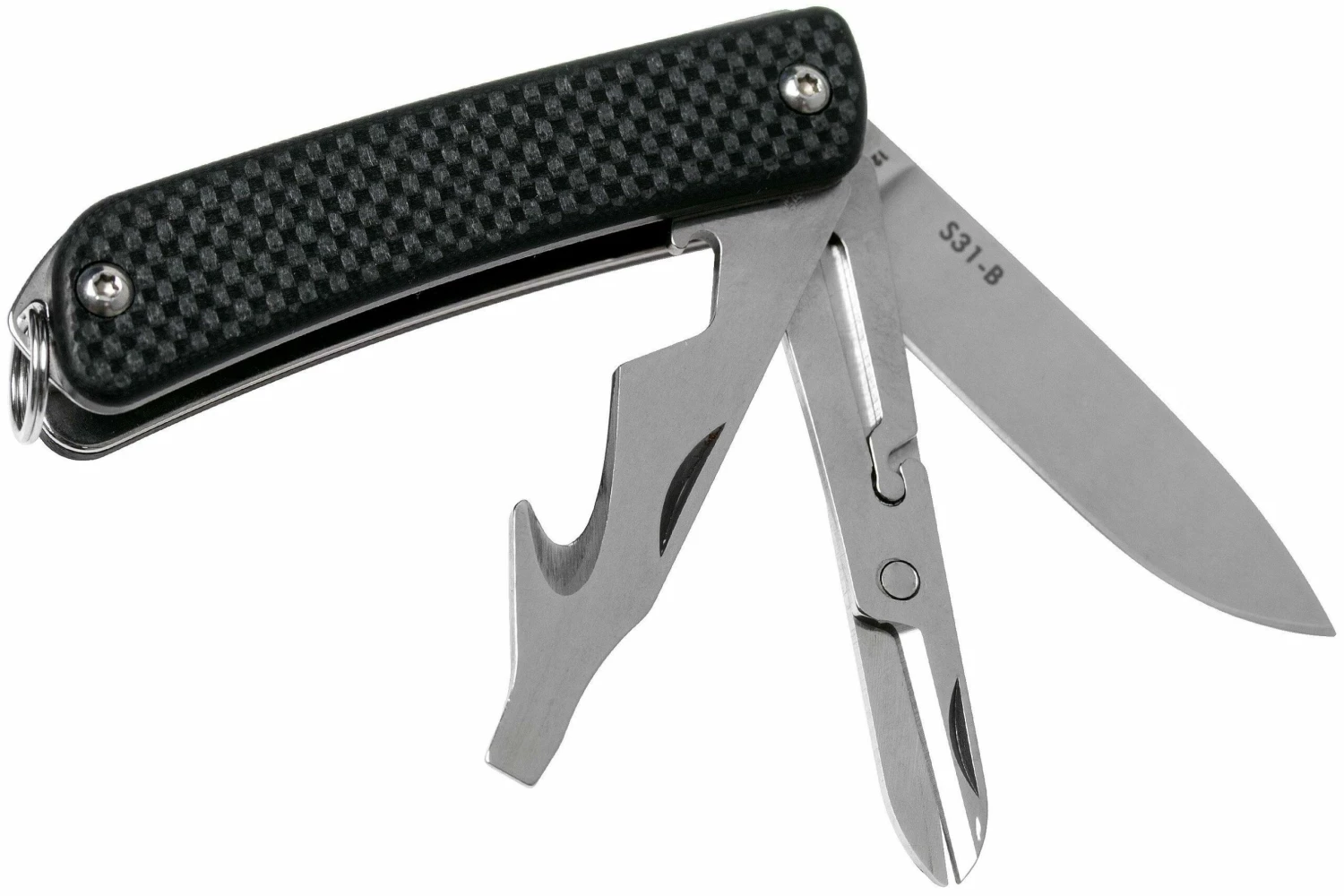 Le Ruike S31 est un couteau de poche porte-clés pratique. Il est compact de sorte à être attaché sur un trousseau de clés tout en étant suffisamment grand pour être utile. Ce n’est que lorsque l’on possède un tel couteau que l’on se rend de son utilité. Pour ouvrir des emballages, du courrier ou encore couper des colliers de serrage en plastique. Mais aussi pour éplucher une pomme ou encore couper les étiquettes de nouveaux vêtements. En plus de la lame, ce couteau est doté d’un tournevis, d’un crochet de coupe, d’un ouvre bouteille et d’une petite paire de ciseaux.