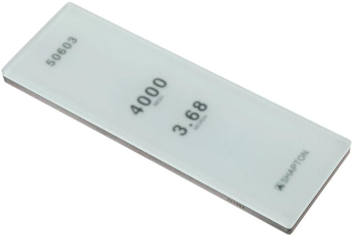 La Shapton Glass Stone HC, grain 4.000 aiguise de façon rapide et uniforme. C’est exactement ce qu’on attend d’une pierre à aiguiser de haute qualité. Cette pierre d’affutage HC est particulièrement adaptée pour aiguiser et polir les couteaux (de cuisine), les rasoirs coupe-chou et les outils dont la lame est en acier carbone. Comme par exemple l’acier à outil japonais Blue Paper Steel. Cette pierre à aiguiser de grain 4.000 est la plus grossière des trois pierres Shapton HC Glass Stones mais cependant très fine.