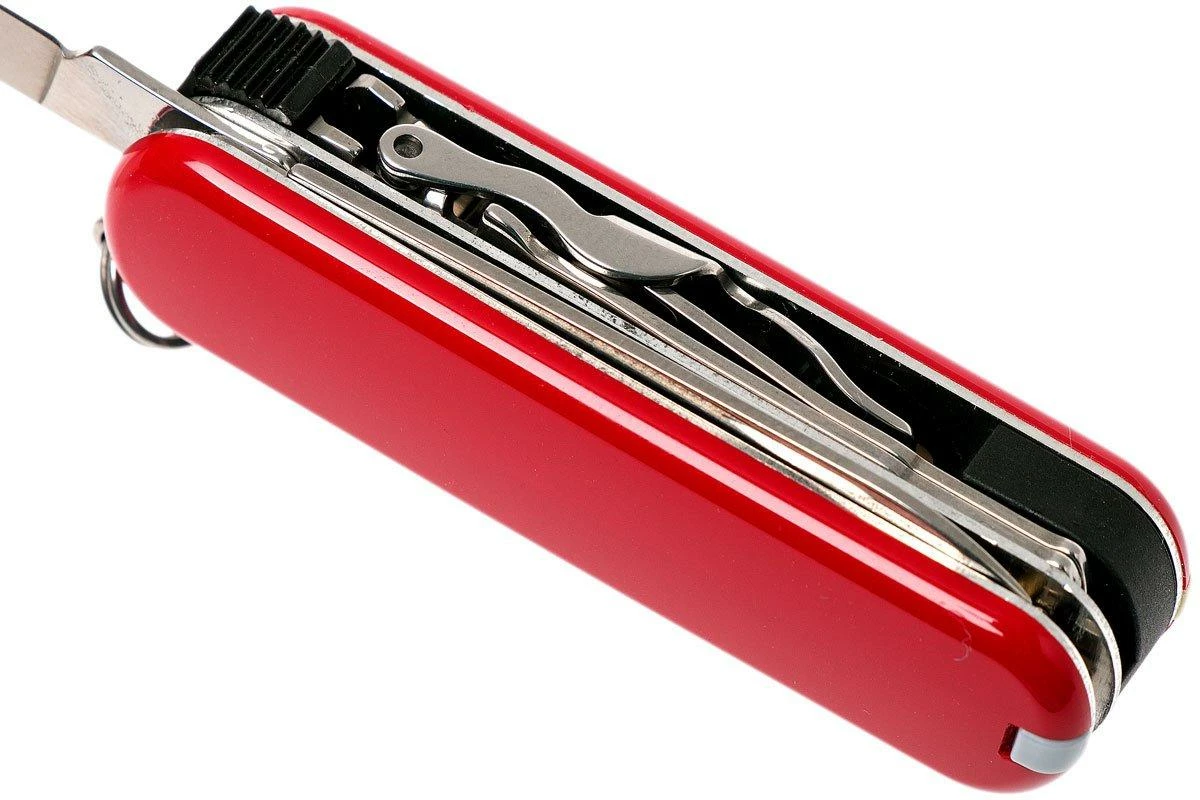 Le Victorinox Nail Clip 580 ressemble à première vue à un couteau suisse typique. Cependant il s’agit plutôt d’un ensemble manucure multifonctionnel dans un format compact. Cette version du Victorinox Nail Clip est équipée d’un coupe ongles, une lime à ongle, un cure ongles et un ciseau. De quoi toujours prendre soin de vos mains où que vous soyez. Le coupe ongles s’ouvre facilement grâce au mécanisme quick release. De plus, ce couteau suisse est équipé d’un anneau pour porte-clés. Les outils sont en acier inoxydable avec une garantie à vie. Les outils sont rangés et protégés dans les coques robustes. Ces coques portent le célèbre logo Victorinox : bouclier avec une croix.